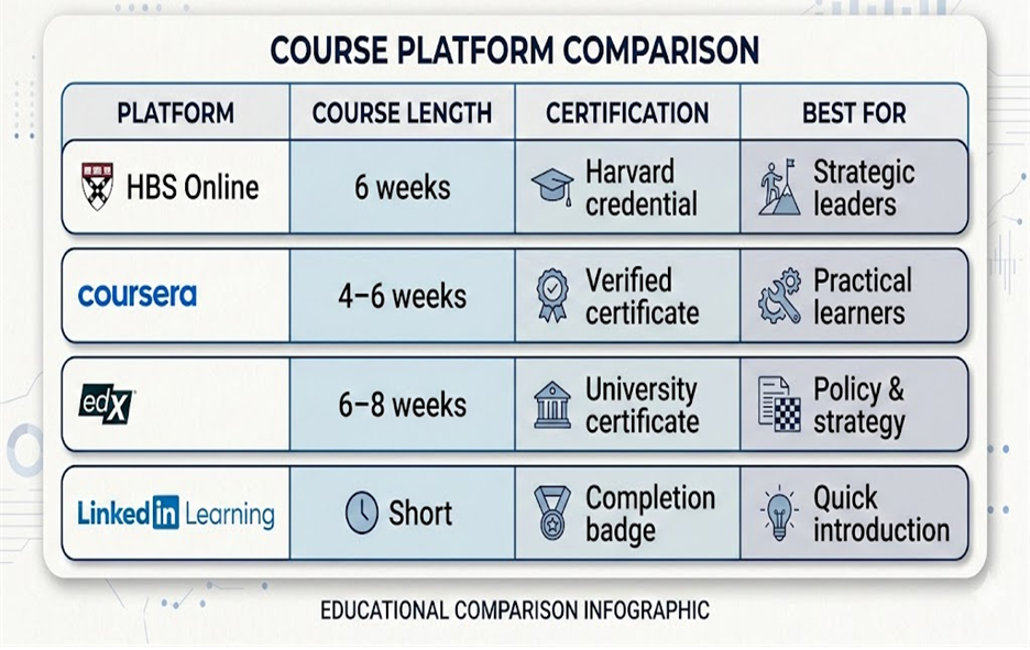 - Platforms like Coursera, Harvard Business School Online, edX, and LinkedIn Learning offer practical sustainability frameworks.