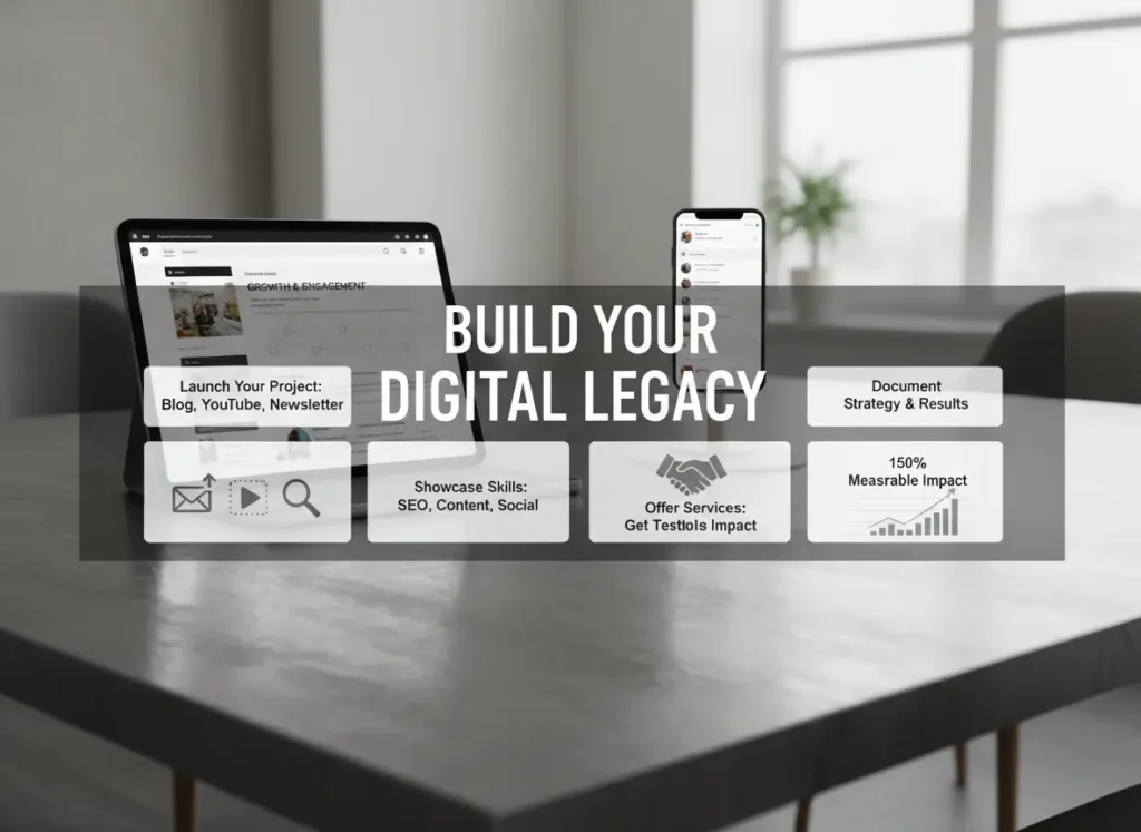 Document everything: your initial strategy, the tactics you implement, what works, what doesn’t, and how you optimize based on data. Even if you only grow to 500 email subscribers or 1,000 blog visitors monthly, you’ll have concrete examples of audience building, content creation, SEO implementation, or social media growth to discuss in interviews.